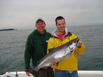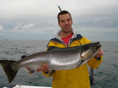 Salmon fishing on many parts of the lake continues to be outstanding. Anglers in the Oswego, Mexico and Pulaski area have been catching salmon from 200 ft. of water inshore to 60 ft. Just east and west of Oswego the thermocline has been 75-80 ft. below the surface. A variety of bait is working... flies, spoons and j-plugs. E-Chip & Spin Doctor attractors with theHammer, green glow, sweetpea, Big-fin, mirage have been taking fish. A variety of spoons have also been working well including the Nk Mags in green glow and the green dolphin.