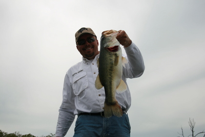For the most part we are targeting spawning fish. There are fish spawing all over the lake right now. Flukes, lizards, and spinnerbaits are taking most of the fish. Any shade of watermelon should work. Our shad started spawning this week, so the spinnerbait bite should get better. The forecast looks great this week, for a change. Pretty pumped. We should get some topwater fish this week too.