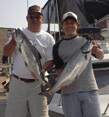June 23 - Lake Superior is definitely packing in some warmer water on the from the Duluth piers out. You will find some surface temps near the Duluth entry in the low/mid 60's and driving out you can still find most surface temps to be in the mid 50's for quit some distance. The weather this past week has been great with the exception of the wind on Weds strong from the south. Fishing has been tough but is certainly starting to show signs of better fishing ahead. Most fish on our boat are being caught near the bottom the last couple of days in apprx. 105-108 FOW (feet of water) off the downriggers. You will find the fish are still shy so we have added a little more length out behind our flasher to our flies. Smaller dodgers seem to be better producers as of late over the larger ones too. Other captains I talked to have had some success on wire line rods with 1# weights down at 250' as well. We did have some fish come in off our full core lead rigs with some added weight as well. As always, if your looking for the most current info your more then welcome to email me and I will try to give you a timely reply! Good luck on the water!