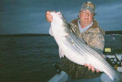 The lake is three feet above normal and the water temperature is in the upper 60's. Striper fishing is excellent on live shad. Some topwater activity is occurring early in the morning on the banks where the threadfin shad are starting to spawn. Down-riggers have been producing fish also.