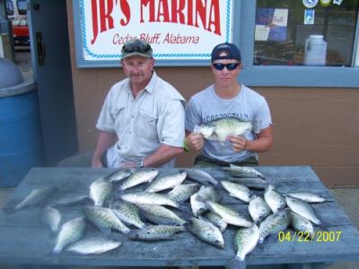 Catfish are biting Good. Catfish are being caught all over the lake. Jug fishing in the bays of the main lake is a sure way to load the boats with some nice fish, The docks at JR's Marina is producing some good fish also. Use cut bait, whole crappie heads or any kind of stink bait.