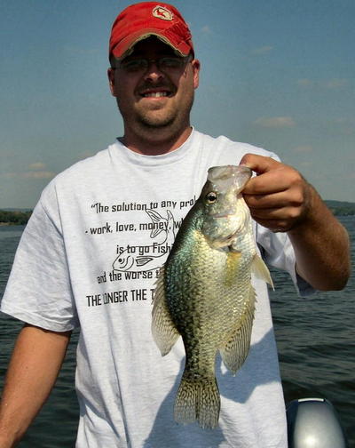 We set off to another part of the lake and within 2 minutes of dropping our rigs, Dave connected with our first big crappie. Wow, this was looking like it was going to be pretty easy. Well it did get quite a bit slower after that. We went thru the same area a second time but found no more magic there.
