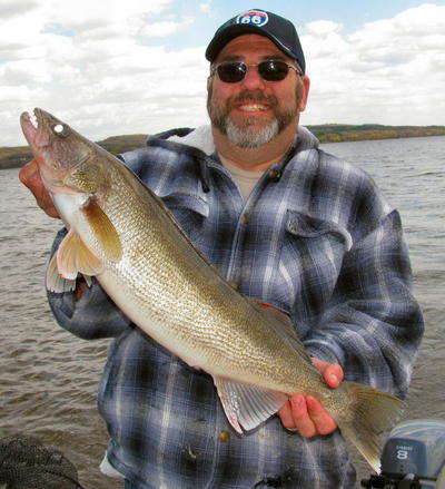 Within minutes of deploying our trolling lines, Mark was hooked up with his first walleye and it was a good one. The first walleye over the side of the boat hit the tape at 26" and after a couple of quick pictures, back in the lake she went. For the rest of the afternoon, I don't think we went more than 15 minutes between hits. We didn't land them all and the biggest one got away before showing herself. Despite that it was one of the best afternoons of walleye fishing that I can ever remember. Our catch total for the afternoon was ten walleyes & saugers caught and three more lost before they got in the boat.