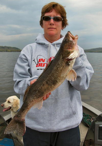 We didn't get any monster walleyes today just a bunch in the 17" to 24" range. Nancy did land her personal best sauger to date. A very nice 23-1/4 incher that would have easily went 5lbs if she were still full of spawn.