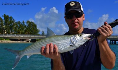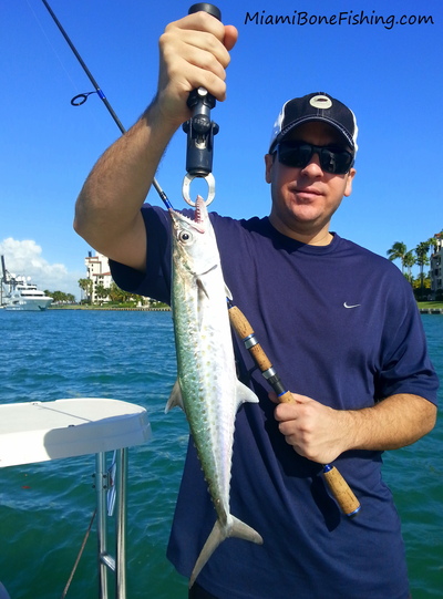 David was back aboard today with Matt from N.Y. for some laid back fishing in Biscayne Bay. While there were no trout to be found, we did catch mackerel, snappers and a big surprise for Matt at the end of our trip. With 20 minutes left before heading in one of the rods doubles over and the drag sings non-stop for a full minute! With the fish somewhat under control and Matt gaining some line the tug of war began and soon after I put the net under a healthy bonefish. Matt got his first bonefish, enjoyed the sleigh ride that is a bones' initial run and released the fish the moment we had to start heading in. What a way to end the day!