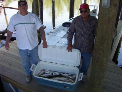 Thurs 4/19/07 – Started out late around 9:30 with my good friend Cisco to check a few new areas's and locate some fish. We found some trout I Lake Robin when the phone rang it was my brother Gary he was at the dock to do some work and wondered what we were catching. I told him we had some in the boat and if he wanted to catch some I would run in and get him, Gary quickly replied Heck ya I want to fish. Ran in got Gary and back to the trout right where we left them. Then we headed to the outside to check things out. Caught a few hear and their but nothing steady. Gary did land a big bull red for his grill before we called it a day. All fish caught on plastic under corks and titelined.