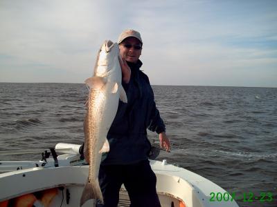 Late report for Sunday from the Beach. When Jamey Sandefur (Sandman) and his dad Doc met me at Campo's the conditions were about as bad as it gets. The front had roared through hours before and left behind a very cold 20-25+ NW wind with a hard falling tide. We started off around Hopedale Lagoon fishing with live shrimp under a cork. With the hard falling tide there was too much current to fish in the bayous or passes. We drifted starting from the lee shore and picked up a few Trout on each drift. Nothing fast with plenty throwbacks, but it was the only action we could find. The keeper Trout were very nice and there was one lost Trout that was good 4 pound fish. Jamey hooked up with and landed a big Red that was released after a photo. The guys fished hard and were rewarded with 36 Trout, 4 Sheepshead, 1 Red, and 1 Drum. It was a tough weather day, but the guys had a good time and it was nice to finally get to meet Sandman.