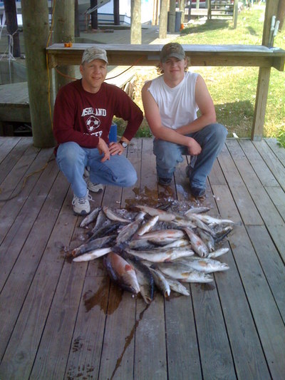 Saturday we started out looking for some Trout drifting lagoons and broken marsh fishing with Bayou Chubs under a cork. We got on a few Trout early, but the action would stop as soon as it would start. We would move to another area, make a drift and catch a few more. Each time we tried a second drift through an area the bites were few. We made switch to Reds and fished a few points with dead shrimp under a cork. They had a blast and put some nice Reds in the box. Total for the day was 29 Trout, 13 Reds, 1 Drum and 1 Flounder.