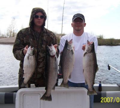 Brown trout charters out on Lake Ontario have still been successful. We've been hitting them off 9 mile pt by the plant. Early morning stickbaits have been working - as the sun comes up spoons off the riggers are doing the trick. Some bonus steelheads are mixed in w/ the brown trout. A few early kings are being taken out deeper for those willing to work hard for a few bites.Oswego harbor has been slow for the big walleye- A few each night but nothing hot and heavy to report.Lake Oneida has been on fire! Walleyes, silver and smallmouth bass have been cooperating each trip out. The walleyes are decent size averaging 18-20\'\'ers. Worm harnesses by day and small stickbaits at night have been doing all the damage.