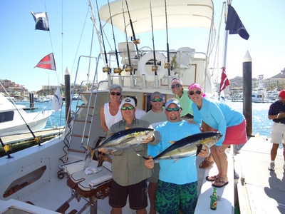 BILLFISH: Marlin catches are steady this week with twenty seven percent of our boats releasing striped marlin. Top marlin boat this report was "Adriana"; they did a good job on the 12th for Ken Ciardiello and son from Connecticut releasing a total of three striped marlin between 120 to 130 lbs at Punta Gorda on the Sea of Cortez. On the 15th, Bryce Weempe and friends from Texas had a great day too, as they were fortunate to release two stripers estimated between 140 to 150 lbs this time a little bit closer, at Cerro Colorado; they also caught two football size yellow fin tuna – hooked with cedar plugs. This same day but on the other side, at the Golden Gate, on the Pacific, Stephen and Andrew Seifert from Appleton, WI released one striped marlin about 160 lbs aboard "Rebecca"; they boated one tuna for a nice sashimi dinner. On the 18th, Rick Mully and friends from Canada released one striped marlin aboard "La Brisa" and boated eight yellow fin tuna between 20 to 25 lbs which took cedar plugs. Pisces anglers had nineteen striped marlin this week.