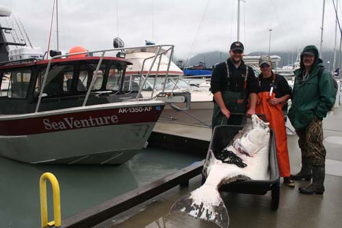 Seward Adventure Charters is on top of the leader board for the Seward Jackpot Halibut Tournament. Their fish topped the scales at 251.7 pounds! The previous leader was 189. The inclement weather for the first half of June had kept the weights down but a week or so ago it broke and the sizes started coming up.