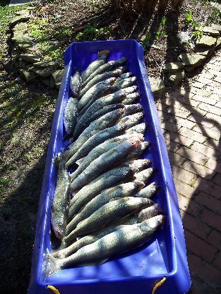 We had just a beautiful day out on the water on May 24th. Weather was awesome winds calm, just perfect for vertical jigging.. The fish were really snapping this morning which is always a bonus.. We caught our 5 man limit of walleye fishing the canadian side of the Detroit River (fountain). Hot bait was 5/8 oz pearl white jig with a shiner colored Fin-S minnow bait. Caught and released 12 or so smallmouth which were a blast to catch with occasional white bass and sheephead. I believe this will be my last walleye trip of the season. My real passion will be starting June 2nd. MUSKIE....hopefully I`ll have some good reports for the opener..Good Luck and tight lines Capt. Craig (www.heatwavecharters.com)