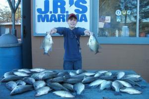 Crappie fishing is Great. There are good schools of crappie suspended 8 to 14 feet deep in all the major bays of the lower lake, Little River is also producing some fish in the main river channel out in front of JR's Marina.