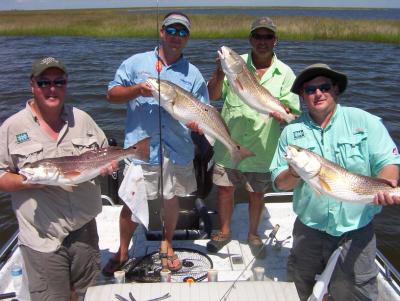 Day One started little slow but we got on some LOG SIZED trout and put whipping on them before heading in the marsh for some RED action. First stop the drags were screaming big reds double and triple hookups. We kept some for lunch and released a bunch too.