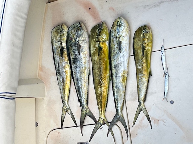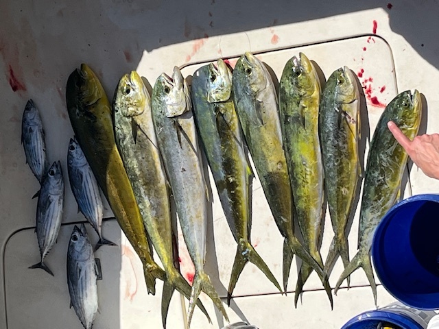 It's not uncommon for Mahi Mahi to display acrobatic jumps and attempts to shake off the line during the fight, so losing a few is a common part of the experience. We were able to capitalize on most of the fish hooked, resulting in a successful day on the water.