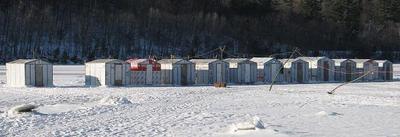 "Ocean-going smelt enter our tidal waters as early as November and December. Anglers get serious about smelting in January and can fish for them into March. Fishing can be done from a pop-up ice shelter. This means taking an ice auger to get through the ice, as well as a stove to keep the chill off, bait, bucket, rods, hooks and other tackle. Everything has to be hauled out onto the ice because the ice is too unstable to drive a vehicle. The majority of smelt anglers like to rent a shack from a commercial smelt shack operation where most of the items are taken care of by the proprietors. Small mom-and-pop businesses emerge each year with as many as 50 smelt shacks for rent on the ice of tidal rivers. The cost to rent these shacks varies, with the range of price somewhere between $10 and $15 per person. Bait, hooks, lines, and sinkers are provided...we use our own specialzed jig rods. There is a wood stove in the shack to keep the occupants warm.
