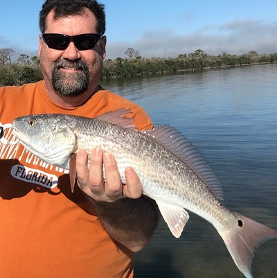 Rusty from Indianapolis was out with me on a 2 boat Mosquito Lagoon charterwith my friend Capt Tony and his boat, we got on a school of Redfish at a shallow flat and sight fished a couple Reds...........