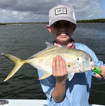 March 2018 has brought winter back to East Central Florida, nights in the 40's and upper 30's most of the month, water temperatures dropping back to 58' to 60' after a warm Feb had water temps up to 72', so a confused pattern of a spring like Feb then a winter like March has made for interesting but good fishing and catching here at Mosquito Lasgoon and the Indian River backcountry., catching schooling Bluefish, Pompano, Jack Crevalle and over sized Ladyfish, Black Drum and Seatyrout are becoming more widespread through the back waters after spending the winter in the deep holes and channels, small schools of Redfish are in the shallows sunning on the chilly days. With the cold water back again I have been fishing a mix of my winter and spring patterns and holes. Dropping live shrimp and 3" swim tails into the holes. This has been a great season for Black Drum here in the back waters, young Logan from Orlando with the best Drum on a trip with his dad and friends with several Drum caught this trip...............