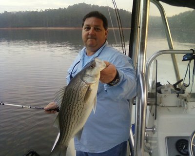Today I got to fished with Keith and his buddy Corey. The top water action today was OFF THE CHARTS. We caught just as many fish on Red-Fins as we did live bait. But to be completely honest we where only able to run two free-lines today. The warm weather has these fish going crazy right now. If you would like to get into some of this great action call me at 770 827-6282 and book your trip today. I just had a trip cancel for Friday if anyone is interested.
