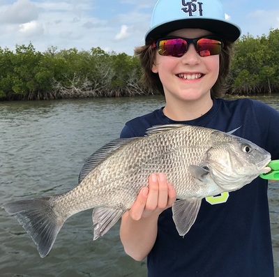 ………….son Liam got to catch and release a good Black Drum at another back waters fishing hole…………….