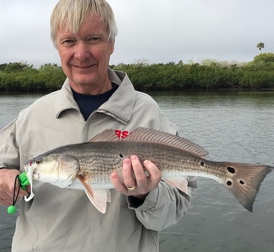 Ken from Chicago caught a bunch of fish on his trip with a couple good Redfish including this cool 9 spot fish on an artificial soft plastic lure………...