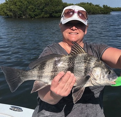 Black Drum are one of our staple “good” fish but they are in decreasing numbers as well as all our other quality fish so I encourage Catch Photo Release on our bigger fish to protect the fishery for the future, Lisa from Ohio with another nice Black Drum……………