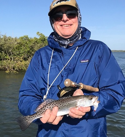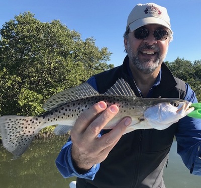 First time clients from Maine out on a fun back waters mixed bag trip recently just after another cold front which lowered water temps for a few days, pushing the pattern back to a winter one again for a short time, Dr David caught a few fun size Seatrout……………...