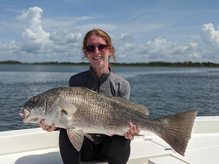 Historically, Black Drum are a nomadic species that can be found roaming from oyster bar to oyster bar in search of their favorite prey, the blue crab. Once a single fish or large school has been located it pays to be patient as these fish scavenge along the bottom for their next meal. Free lining a quartered blue crab on the bottom will get most spin anglers in the game but for those anglers looking for the ultimate challenge try slow stripping a large crab pattern in front of their nose.