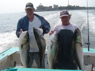 The Marilyn jean Bailed the bass on a 2 man clam trip the guys had their limit in half hour and released fish till the got tired. IT was a specila trip all nice size hit the bottom and stick