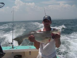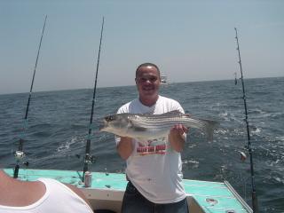 Open boat trip today for Bass and Blues 5 anglers combined for 7 Bass to 15lbs on the chunks along with a fair amt of slammer blues the action was consistant all day. Latanya sent her husband Trevor for Fathers day a day early and I had a nice group that also had dad out for the day (sorry guys lost the name sheet) Capt. Timmy did a bang up job with skippy on deck.