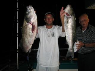 Capt. Ryan had em out bassin last night and everyone had a blast catching fish between 8 and 15 lbs on the worms. We had 15 keepers and only a few shorts for a light crowd . the guys that kept the baits moving did better than the dead stickers gotta keep it movin. The deep is still producing but there have been some fish in the bay the last few nights