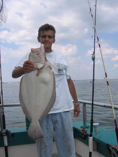 Fishing the last few days has been very good with nice numbers and very nice size fluke . 50 ft and moving water is the ticket with strips and spearing being the bait of choice . Mike had this nice 7 lber and we had a few more in the 4 to 5 lb range.
