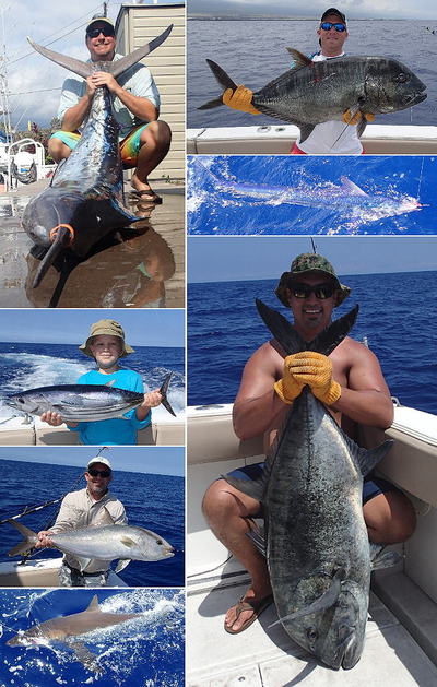 Summer isn’t mahi mahi season but we have had a fair bite on them all summer long. The ahi bite has been fair. Summer is ono season but this summer hasn’t been very good for them. Some spearfish are being caught even though it’s the slow season for them. The otaru (otado), (big skipjack tuna), (chunk light tuna) are a typical catch in late summer but the run actually started in early summer this year. They’ve been a little finicky about biting but putting in your time, you’ll eventually get some.