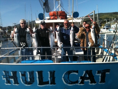 Opening day of rockfish season, Huli Cat Capt Tom Mattusch reports 7 salmon for 4 anglers. The fishermen had lots of action that included 12 shakers and a handful of missed fish, due to tight drags. I heard some commercial salmon fishermen getting fish down in the 165 to 180 foot range. Our fish came in the 35 to 60 foot range, easily targeted by trolling. On the way in, the anglers requested a peek at the crab pots, so we ran a few pots for 16 crab, to go with their salmon. The Huli Cat will be running rockfish trips below Pigeon point, salmon trips and crab trips. Best area was 37 15N & 122 43W.