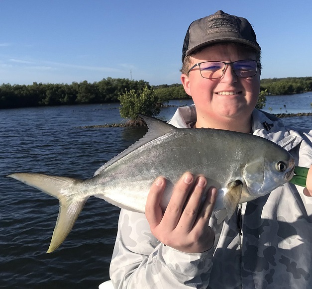 Pompano one of the schooling and migratory fish which travel up and down the eastern seaboard, following the water temperature with the seasons through the year, most travel along the ocean beaches. But some do come inside the inracoastal waterway, Sawyer from Alabama out with me recently with a quality big Pomp…………...