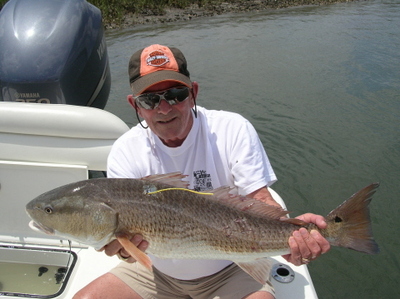 If you would rather go with the live/cut bait root for the Redfish, there is plenty on bait around; small mullet and menhaden are in most of the local creeks. The days I've caught bait, one cast of my net has yielded plenty bait for the day. Light Carolina rigs with an Eagle Claw L 42 #1 or 1/0 hook and twelve to sixteen inches of forty pound mono for leader as a rig. Fishing creek mouths, oyster rock edges and marsh grass lines will produce Redfish for you. Just remember fresh lively baits will catch more fish!