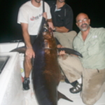 | What's Hot Offshore - August 27, 2011 Swordfish _ Day or Night the action is picking UP! We caught swordfish in the last three night trips in a row, icluding a couple fish at or over 200 pounds. Dorado are also offshore and there have been kings, bonitas and some sailfish. Live threadfin herring have been the bait of choice. by Dean Panos |