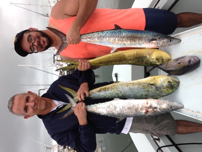 Another real pleasant surprise has been the amount of mahi. It seems like every time you think they're gone they reappear. Most of the mahi we are catching these days are falling for live baits dangling off kites and intended for sailfish. We have also caught many of them on flat lines during calmer conditions. One thing that I noticed on a recent trip was how the dolphin seemed to have a preference for the larger baits, especially goggle eyes. On a recent trip we caught at lease ten really nice dolphin along with a few sharks.