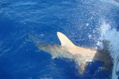 Ok time for the big one so in came the trolling gear and out went the kites with 3 live baits suspended from them along with one big shark bait also suspended from the kites. We also send a shark bait 350 feet down to the bottom and one last shark bait about half way down.