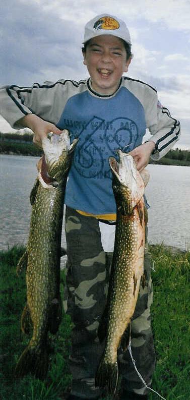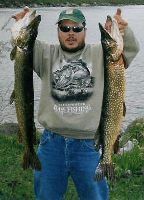 We ended up in the Long Sault park, we had total wind shelter on one side of the road, and crystal clear water. Unfortunately nothing was biting for the first hour or so, as we fished for perch, carp, pike and bass. Then out of nowhere, I got a nice hit on a Thunderstick top water lure. I set my hook, and the fish took off, Ari grabbed the camcorder, Jimmy woke up from his snooze, I had a nice Northern Pike on the line. I brought him in a couple minutes later, it measured 32 inches, weighted in at 7.5 Lbs. As I climbed the bank, to unhook it, Jimmy started casting the Thunderstick, and noticed it being followed by more pike. I quickly switched my carp rod for a leader and blue / silver hammered spoon. First cast hooked up to another Northern pike, measuring 33 inches and weighing in just over 9 lbs. Suddenly they were everywhere, we tried a few more casts, had some follows, but they were gone again as fast as they showed up, all in a matter of 5-10 minutes.