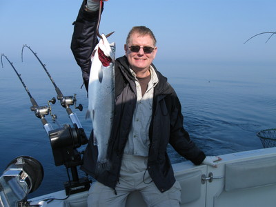 Some of our best producing spoons have been Reaper Magnum Peacock Silver and Magnum Fish n Chip on sunny days. Try the Reaper Magnum Glow spoons on overcast cloudy days. For small spoons the Vulcan Dolphin Green Silver and combinations of silver spoons with green or blue accent colors. Run the boat speed at 1.7 to 2.3 MPH. Vulcans, Nestor Wobblers and Reapers are sold only on the web at http://www.badgertackle.com Have a great fishing season. Let's go fishing!! Jim charters out of Milwaukee, WI. with Blue Max Charters. He can be reached at 414-828-1094 or visit his web site at http://www.bluemaxcharters.com Copyright© 2009, James J. Hirt, All Rights Reserved.