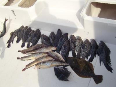 Ended the day with 17 nice sea bass, 7 big ling, and 1 keeper fluke in the box while releasing at least a half dozen tog. Many of the tog were keeper-sized, including the largest estimated to be ~7-8 lbs, a short pollock and to many short sea bass and bergals to count.