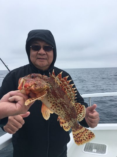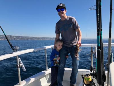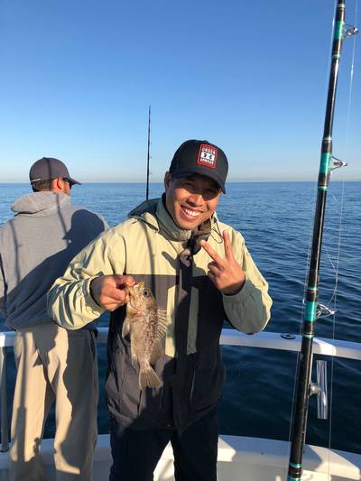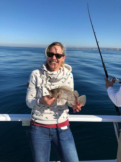Captain Jon at the helm and first mate Mat on a ½ day local charter this morning. Beautiful San Diego weather and some whales spotted heading south. The fishing was on the slow side but they managed to catch some fish. They caught 5 calicos, (3 safely released), 2 Sculphin and 10 rockfish (10 safely released).