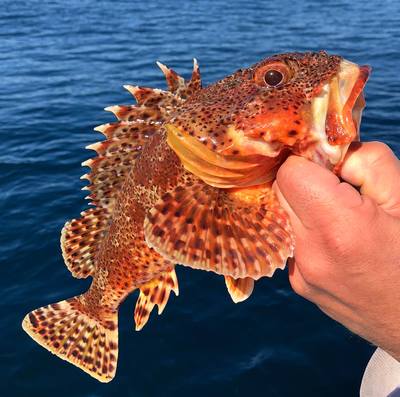 Captain Jon at the helm and first mate Mat on a ½ day local charter this morning. Yesterday they caught a very angry Sculpin. Today the brother wanted revenge. It was another beautiful San Diego weather and more and more whales are being spotted heading north. They caught 2 sculphin (2 safely released) 1 sandbass (safely released and 6 rockfish (6 safely released).