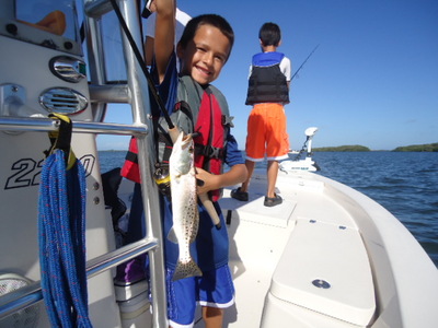 Jet 9 and Jake 7 along with Mom and Dad have fished we me the last several years. Its great seeing these super young men grow up. We started the day chasing redfish with not much action. Finally a rod began to scream and Mom was tight to solid fish. After 5 minutes we saw the big redfish was actually a big ray!