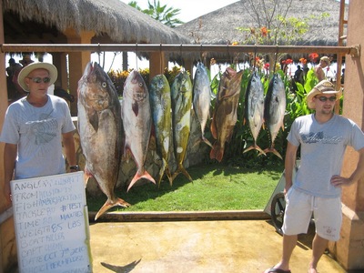 The fleet has been finding good numbers of schooling football sized yellowfin tuna on the Iman Bank, though some days there were too many skipjack beating the tuna to the sardinas. These tuna were readily striking the fresh dead bait, but in the past couple of days have once again started to have a preference for the live sardinas, which only recently have become available. The same area of Iman has produced a variety of species, included some wahoo and dorado on the surface, as well as a mix of quality bottom dwellers, namely dogtooth snapper, amberjack and grouper, most of these fish are striking on larger baitfish and some specimens weighed in the 60 to 85 pound class. This type of bottom fishing takes more experience than many anglers realize, even for the most skillful local skippers, it proves a real challenge to be able to hook these powerful fish and turn them away from the rock piles before they are able to cut off even your heavier eighty pound tackle.