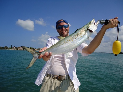 Everyday on the water is a new adventure. With my anglers Steven and Ricky onboard Tuesday we headed out for a day catching redfish, trout and mackerel. Bait which was tuff the last week was vastly improved and only required 4 tosses of my 12' Calusa cast net to fill the live well. With a mix of white baits and threadfins we headed out in search of redfish.