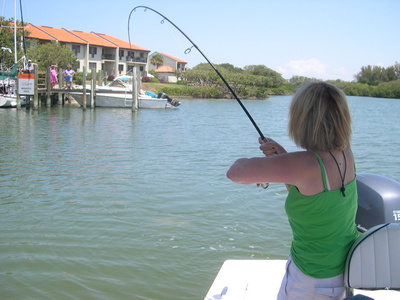 The afternoon I had a special angler onboard, my wife Jackie AKA the Admiral. Jackie wanted to see firsthand this amazing Monster redfish action. Two casts and Jackie was into another BIG redfish, check out the image you can see she had her hands full! 10-15 minutes later she was posing with a beautiful 33" 11.5 Pound redfish. Next cast Jackie was once again had her hands full of 10 pounds of redfish. Jackie looked at me and said I had enough I'm going to sit and read my book. Reds this size are bulldogs making big heads shacks and powerful runs. White baits and pinfish connected to 1/0 hooks backed with 30 pound fluorocarbon leaders.
