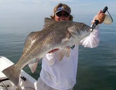 Spotting tailing fish is prime right now with a variety of tailing species feeding heavily for the winter. Redfish, Speckled Trout, Sharks, Cobia and even Huge Black Drum have been targeted while tailing in inches of water and should remain in this phase for another month or two. Talk about a rush! It is one thing to target Big Fish, but it is a whole other ball game when you target Big Fish is shallow water that you can actually see. Normally, when we target tailing fish we arm ourselves with a variety of different baits and artificials. I have had my best luck using live shrimp with a bare 1/0 or 2/0 circle hook. The circle hook is preferred because most of the fish we are targeting are Way Out of the 27" slot. As for artificials you can not beat a Berkley Gulp! Shrimp Texas rigged with a 1/0 worm hook. Johnson spoons and Rapala Skitterwalks also work well but remember when a fish has his face deep in the grass or the rock he/she is more or less foraging around for hidden shrimp and crabs. The key when fishing these tailing fish is to first take 2 Deep Breaths. The second step is keep an eye on which way the fish is facing. And finally place your bait 4-5 ft in front of the fish and watch its reaction. Normally it only takes a second from a hungry Redfish and your bait and line will be off to the races.
