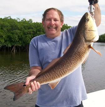 If you don't believe me as Dick Beard who was fortunate enough to find out just how fun and exciting it can be to catch a Monster Redfish that you actually can see. Fishing in less than a foot of water and with our eyes glued to every flicker and disturbance in sight Dick and I all spotted this huge fish from a great distance away. After Dicks first cast was engulfed by a hiding 15" Rat Red, Big Daddy became a little excited. Dick's second cast with a live shrimp didn't last 10 seconds before Big Daddy lit up like a Christmas tree and immediately engulfed his jumbo shrimp. After a 10 minute battle through the mangroves and kelp grass we were finally able to put this 33" 13lb Redfish in the net. After a few great pictures this fish was released to bring more enjoyment and excitement to another lucky angler.